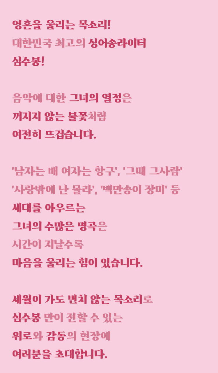 공연 중간중간 들려주시는 심수봉 님의 따뜻한 이야기까지!
